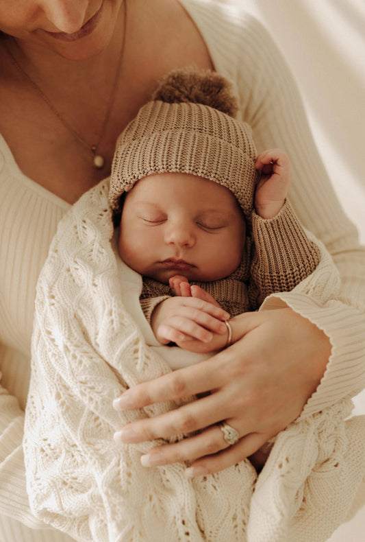 Cappellino Pompon in cotone testurizzato | Cioccolato