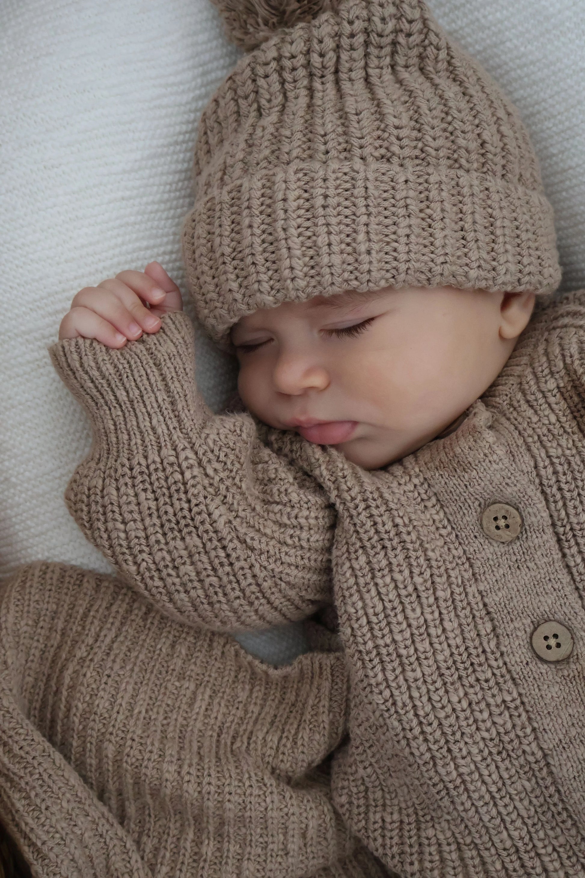 Cappellino Pompon in cotone testurizzato | Cioccolato