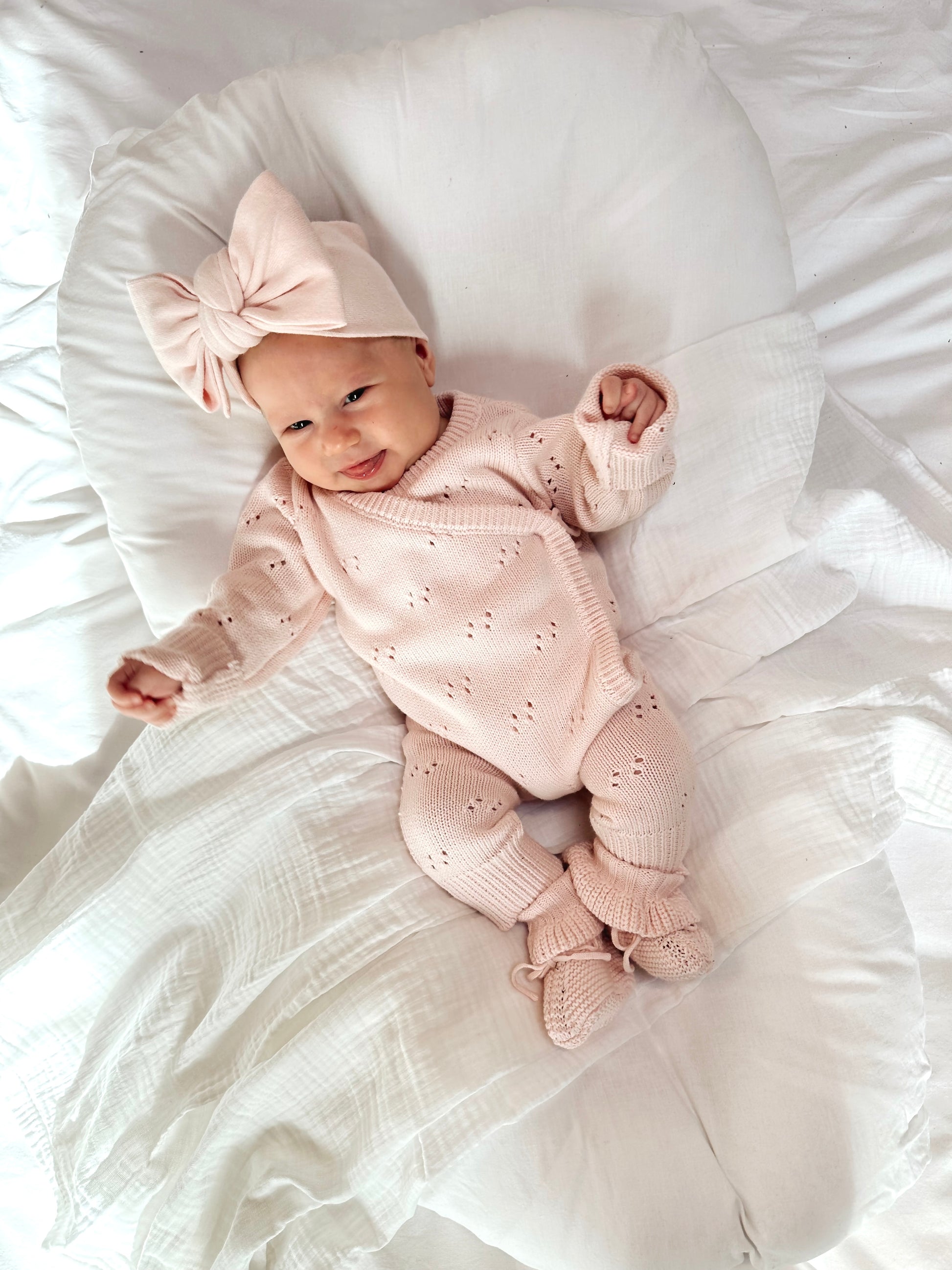 Ho acquistato la tutina rosa traforata abbinata alla fascia con fiocco rosa e alle scarpine rosa con i pon pon. Che dire? Tutto bellissimo. Il materiale sembra ottimo… Sono felice dell’acquisto… non vedo l’ora che nascerà la mia piccola per farglieli indossare ❤️